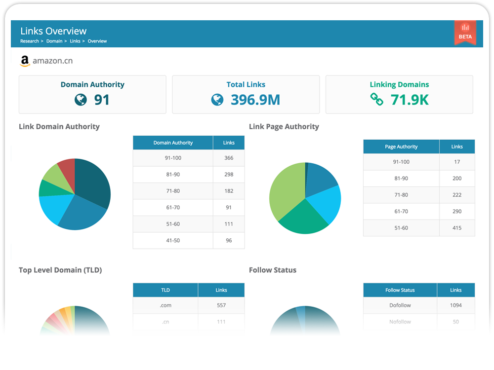 See how many backlinks a site has, which backlinks are their most valuable, the top landing pages on the site, top anchor texts used to link to the site, and more. Browse a complete list of sites’ backlinks and spy on competitor strategies.