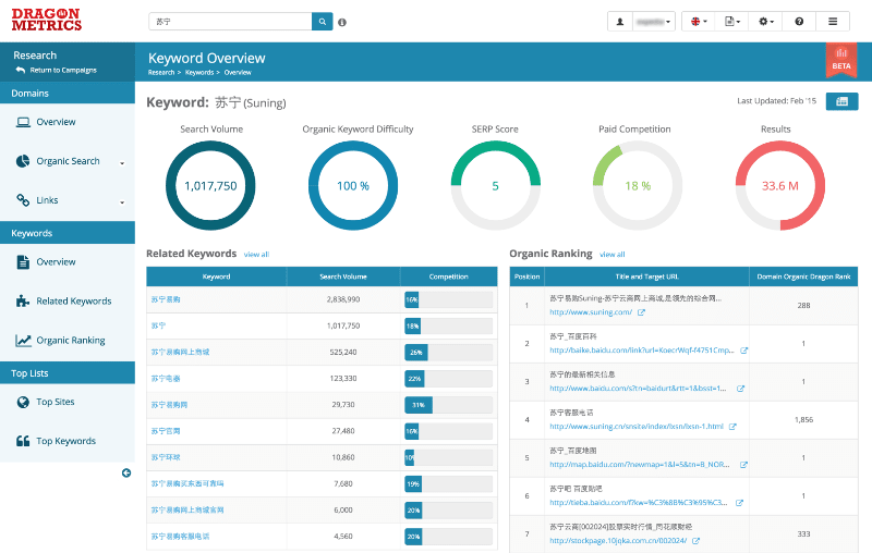 We typically don’t like to hype too much, but this is by far the most proud of anything we’ve ever done. Put simply, if you do SEO on Baidu this is the tool you’ve been looking for. It’s an industry first – no other tool on the market has anything that can rival the analysis that Dragon Metrics can bring for organic search research on Baidu.