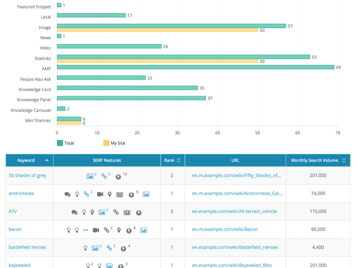 Measure performance and look for opportunities on 15 types of tracked SERP features, including mobile-only result types such as AMP.