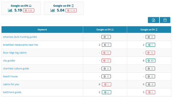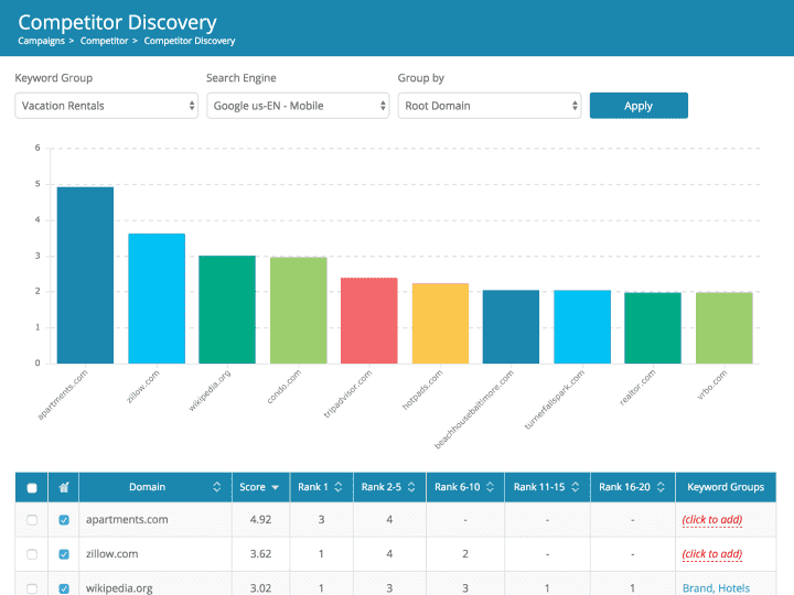 Often times the strongest domains for a set of keywords will differ on mobile and desktop. Dragon Metrics will automatically uncover your top competitors on each device.
