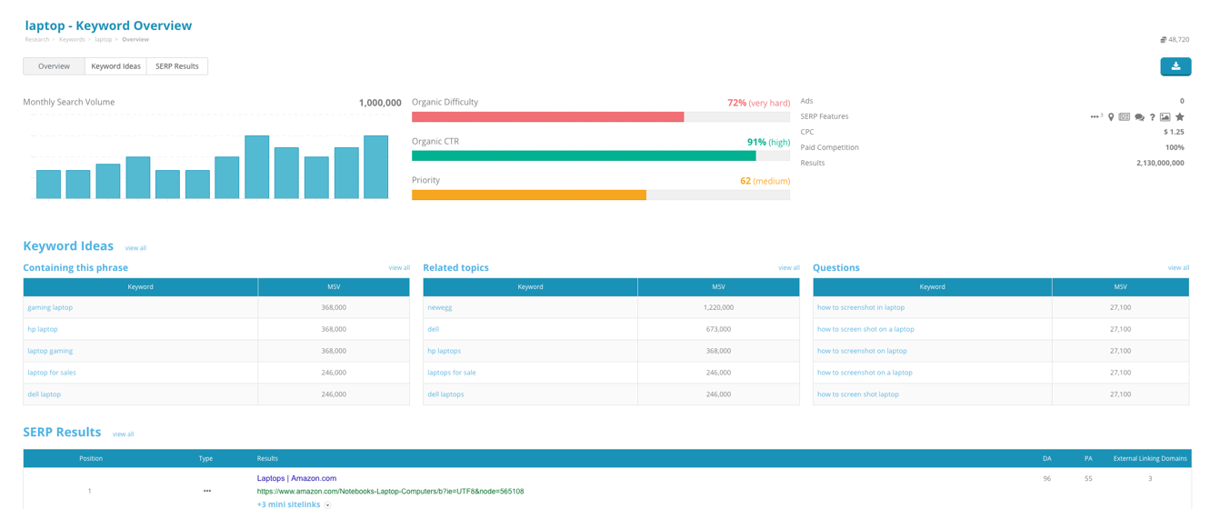 For this month’s release, we’ve started from scratch and completely reinvented keyword research in the platform. Now it’s easier than ever to find the perfect keywords for your site with the addition of keyword difficulty scores, SERP analysis, a better keyword recommendation engine, questions, robust filtering options, and much more.