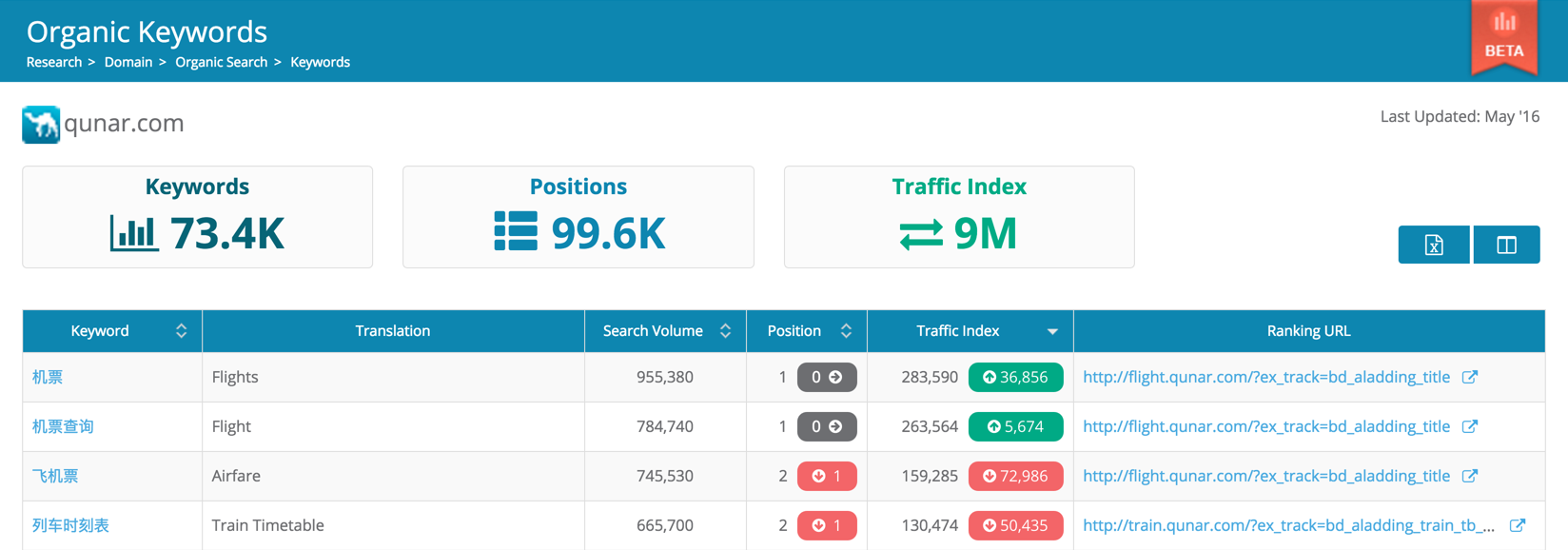 All data comes directly from Baidu Keyword Planner, so you have the most up-to-date data in an easy-to-use interface.