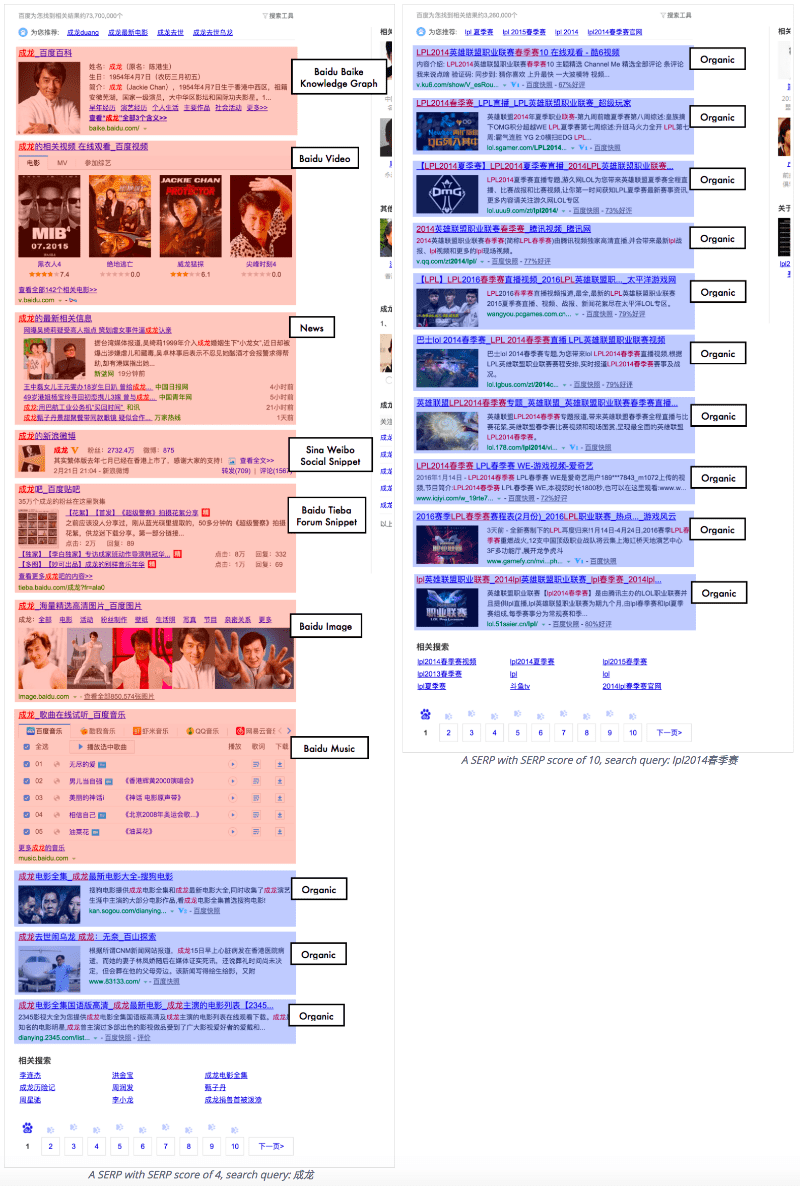 Baidu creates their own custom-designed rich snippets to provide extra exposure to their own products. It’s not the first time we see search engines give their own products with privileges in their ranking algorithms, but Baidu really takes it to the extreme. In our research, we’ve found that Baidu’s own properties occupy an average of 40% of results on page 1!