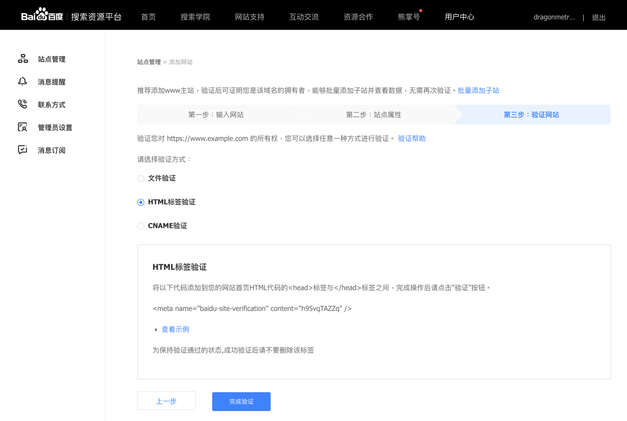Similar to Google Search Console, Baidu Webmaster Tools offer three ways for users to verify their sites: