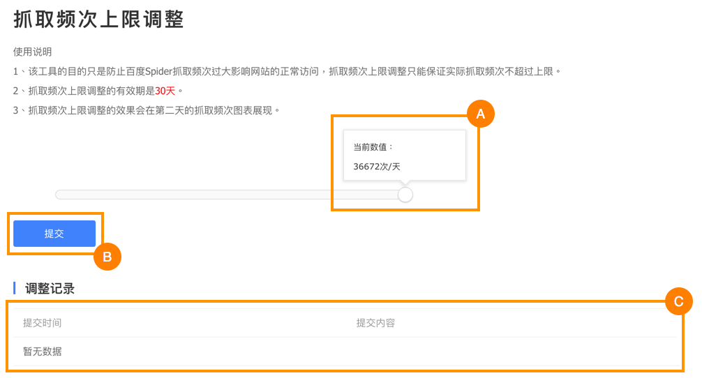 With Baidu Webmaster Tools, webmasters can adjust Baidu Spider’s maximum crawling frequency. It’s important to choose the right balance between frequency and performance, since a too-low crawl frequency can affect your site’s indexation on Baidu, but a too-high frequency can affect your server’s performance.