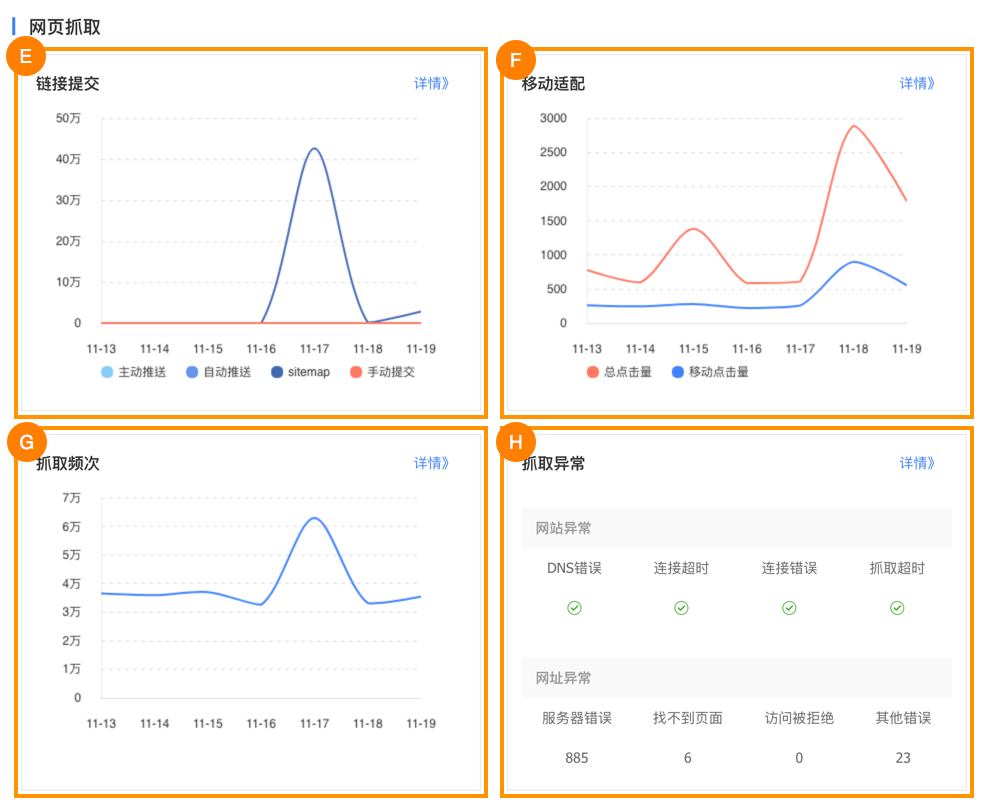 If a site has a lot of crawling errors or uncrawlable content, search engines will rank them lower and index less pages, since they offer a poor user experience. With Crawl Error Tool (抓取异常工具) in Baidu Webmaster Tools, you can see how successful Baidu spiders are able to crawl your site over time.