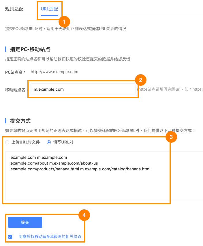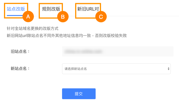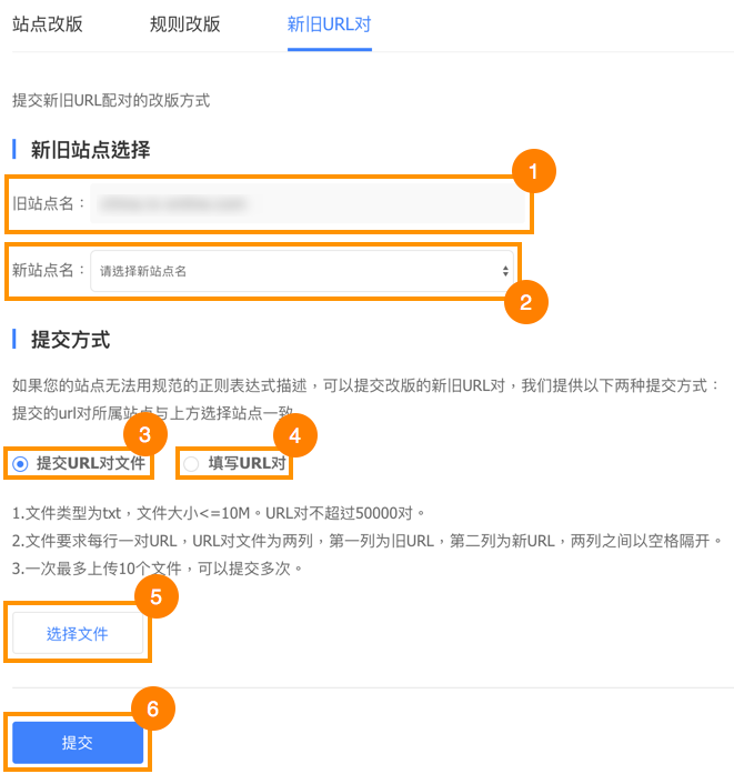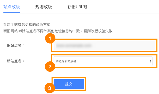 We will be covering Change of domain (站点改版) and URLs pairing (新旧URL对) in this tutorial.