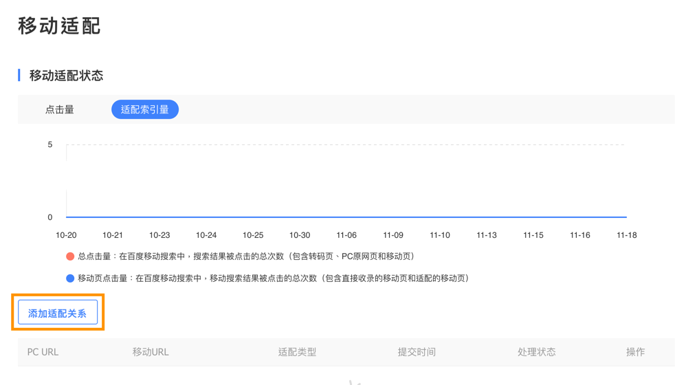 There are two methods to use the mobile adaption tool, rules adaption and URL adaption, we will be demonstrating the URL adaption method this time, click on the 添 适配关系 (Add adaptive relationship) button to start.