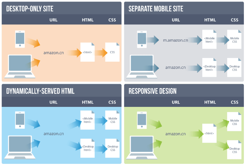 Before we run into specific configurations for mobile friendly website in Baidu, let’s take a look at the 3 main types of mobile web development solutions: Separate mobile site, dynamically-served HTML, and responsive design.