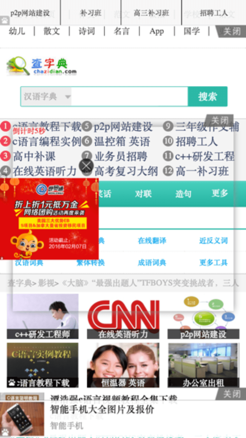The main content of the page should appear in the middle of the main screen, other on page elements with low relevancy shouldn’t interfere consumption of main content. Baidu will penalize improper usage of pop-ups and layers according to its effect on user experiences by reducing the ranking power of these pages.