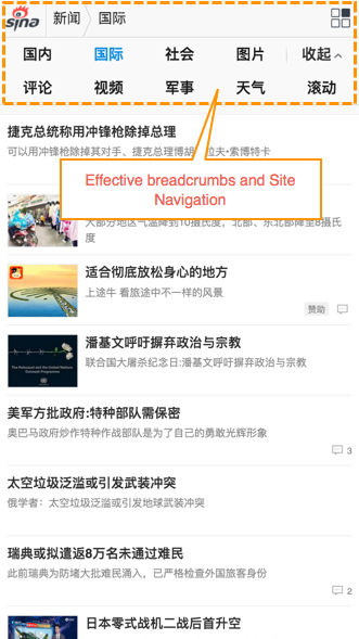 A well-structured page should allow visitors to spot the main idea of the content at first glance, consume content without unnecessary disruption, and be able to quickly get what they are looking for. They should also be able to quickly understand the main idea of each part of your sites by reading through your sites’ navigation. To build a well structured pages on mobile, Baidu offers 2 tips: